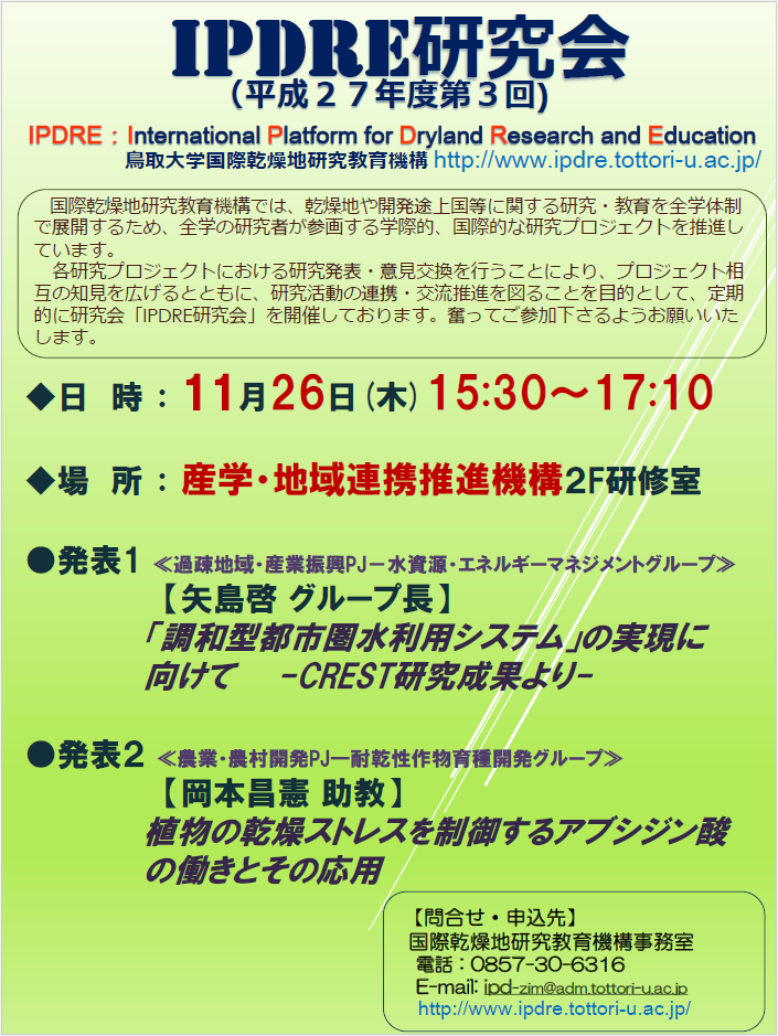 【終了しました】 IPDRE研究会を開催します。