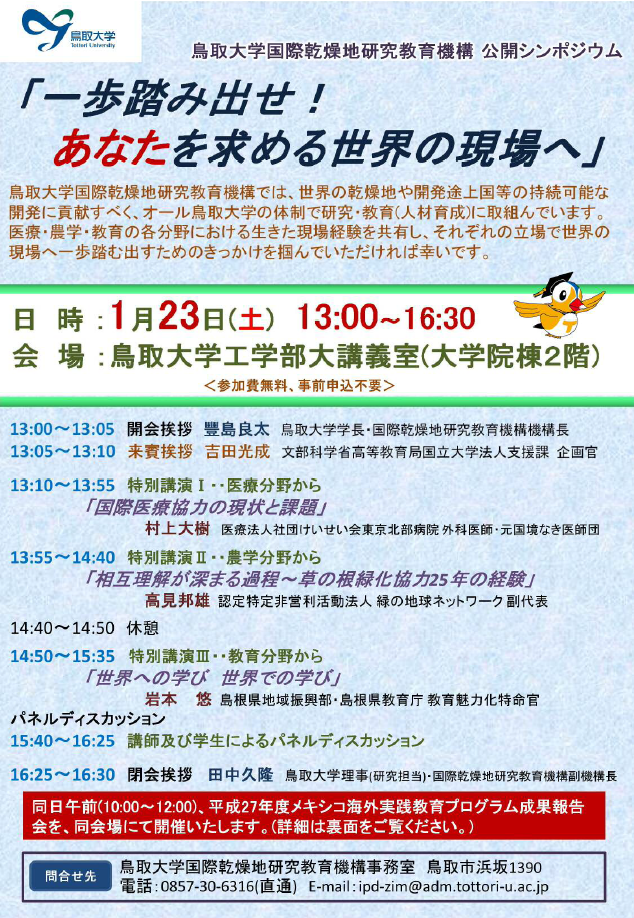 鳥取大学国際乾燥地研究教育機構公開シンポジウムを下記の日程で開催いたします。