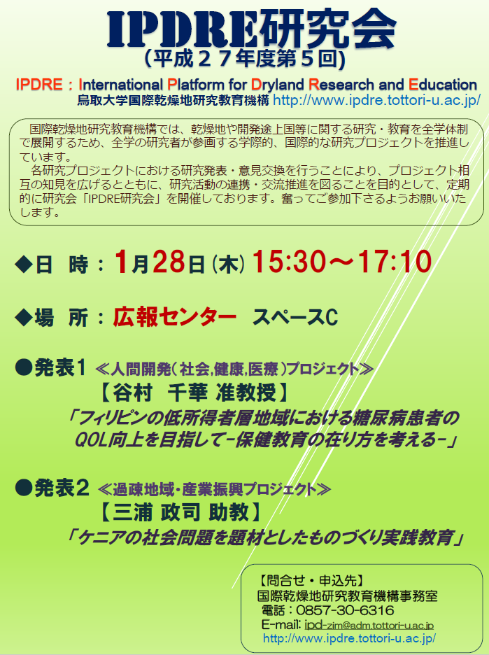 【終了しました】 第5回 IPDRE研究会のお知らせ。