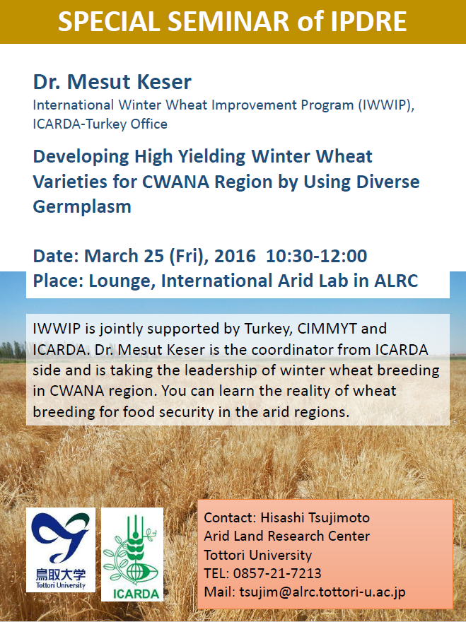 タイトル:Developing high yielding winter wheat varieties for CWANA region by using diverse germplasm