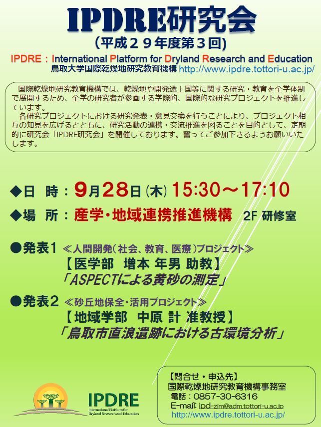 【終了しました】 平成29年度第3回 IPDRE研究会のお知らせ。
