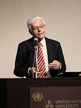 引き続き、武内和彦東京大学サステイナビリティ学連携研究機構(IR3S)機構長、イスラエル・ヘブライ大学のウリエル・サフリエルUNCCD科学技術委員会前議長、そして、モンゴル国自然環境・観光省のマジグ・トンガラク森林政策局長による基調講演が行われました。