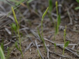 地域資源グループは砂丘地の生態系や歴史・人間活動を主題にしています。生態系では,鳥取砂丘を中心とした特徴的な砂丘地形の成因,維持機構とその将来像,人のかかわりと生物多様性,生態系サービスとの関係解明を進めています。鳥取砂丘では観光客の入り込みにともない生態系保全に課題を抱えていますが,砂丘内で24年ぶりに鳥取県の絶滅危惧種「ハマハナヤスリ」を再発見,といった明るい話題がありました(【図1】,2015年6月確認)。